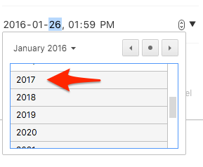Alternatively, you can access a drop-down date picker by clicking on the downward triangle at right: